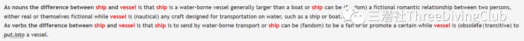 还有Ferry,Fleet,Tanker,Craft等,其中又数Tanker用的比较广,如果潜导跟你介绍时用Vessel来称呼要去的船的话,如果你想确认是不是大货船,别用Big来形容,直接问:“A Tanker?”,等待你的就是潜导敬佩的眼光和点头。