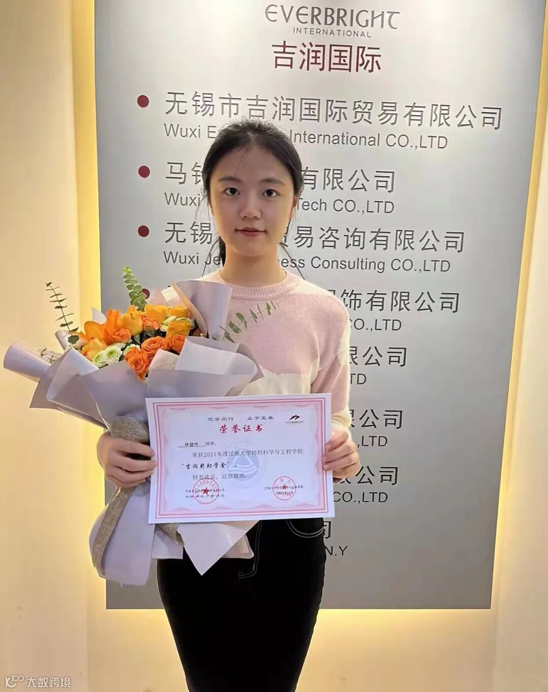 11月19日下午,江南大学纺织科学与工程学院2021年度“吉润奖助学金”颁奖典礼暨社会奖助活动月启动仪式在北区大学生活动中心举行,纺织科学与工程学院党委书记张菁、江南大学学生工作处副处长俞立峰、江南大学社会资源处副处长窦新华、设计学院副院长潘春宇、商学院党委副书记徐静、江南大学招生就业处就业指导中心主任胡国顺、纺织科学与工程学院副院长黄锋林、党委副书记陈艳君,我司代表董事长范恒明、员工代表范晓雁、副总裁黄正龙、营销总监陆银燕、培训经理何旭芳出席本次颁奖典礼。