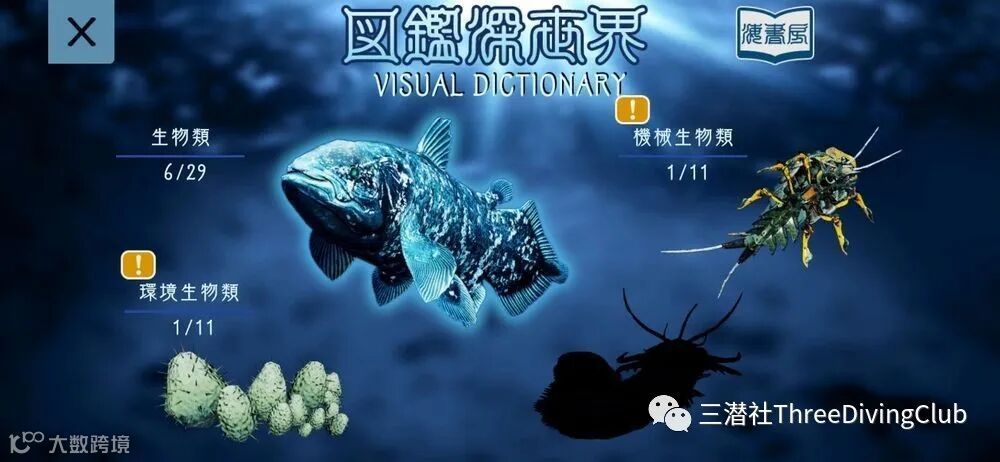 对于海底的生物来说,主角才是「侵略者」。在主角踏足其领土的一刻,便会前来袭击。其中有些生物更是十分巨型和强大,威胁玩家的性命。利用手上的装备存活下来吧。所有遇见的生物都会记录到「图鉴」上,填满图鉴,解开「世海」的谜团也是乐趣之一。