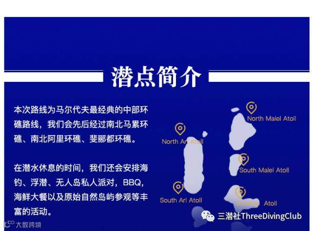 本次路线为马尔代夫最经典的中部环礁路线,我们会先后经过南北马累环礁、南北阿里环礁、斐郦都环礁。
