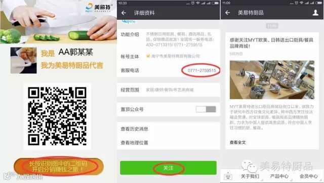 ①. 让微信朋友通过你的二维码关注《美易特厨品》公众帐号