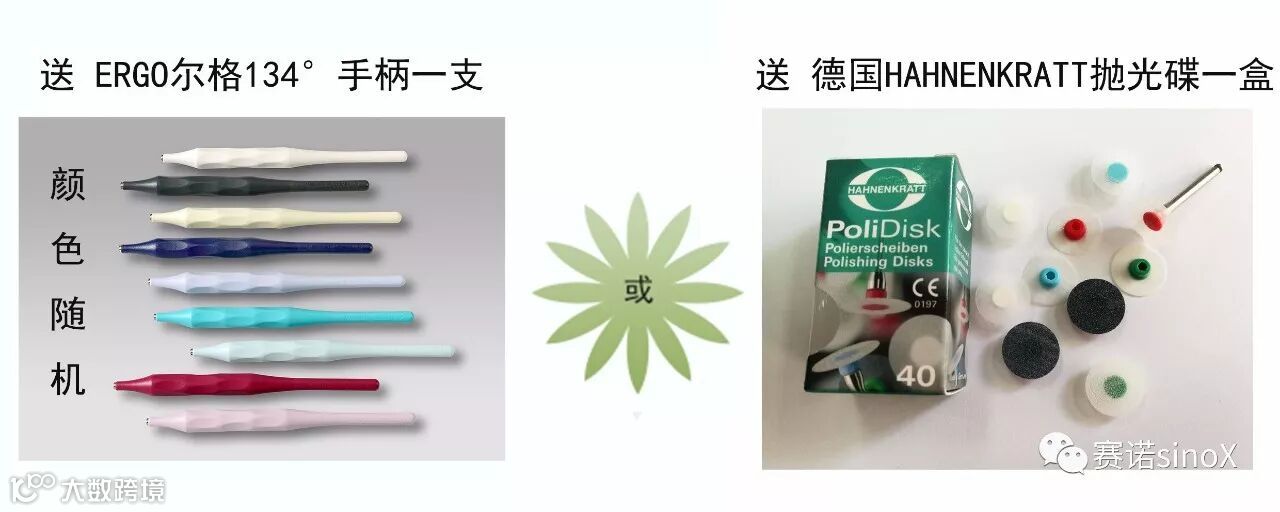 购满口镜金额达到1000元以上,纤维桩,抛光碟,手柄任选3件送您,可自由组合。