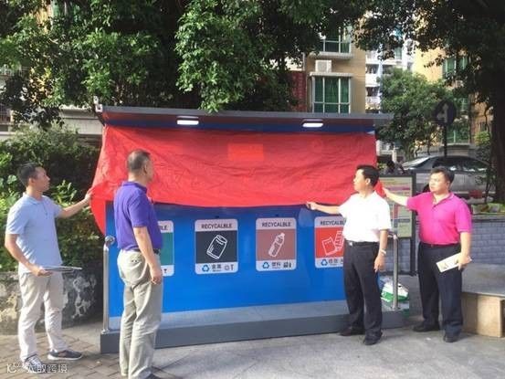9月26日下午,深圳市东晓街道也迎来了智能资源回收房的亮相,阳光明居物业小区引进智能资源回收房,举行了智能资源回收房揭幕仪式,并由垃圾分类专员为居民详细讲解垃圾分类知识,为居民开卡,指导使用智能资源回收房,引导居民对日常垃圾进行正确投放,大大提高了居民对垃圾进行分类的主动性和积极性。