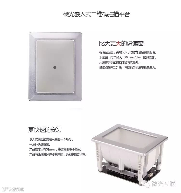 微光互联嵌入式二维码扫描平台有两种产品型号: