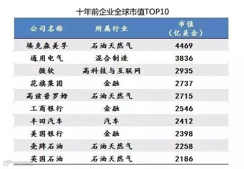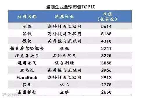 新的科技浪潮一直主导着生产力和生产关系的大调整,并不断涌现出新的产业,促进社会进步。十年前,全球市值前10名主要还集中在能源、金融等传统产业。现在已经被高科技与互联网企业占据半壁江山。