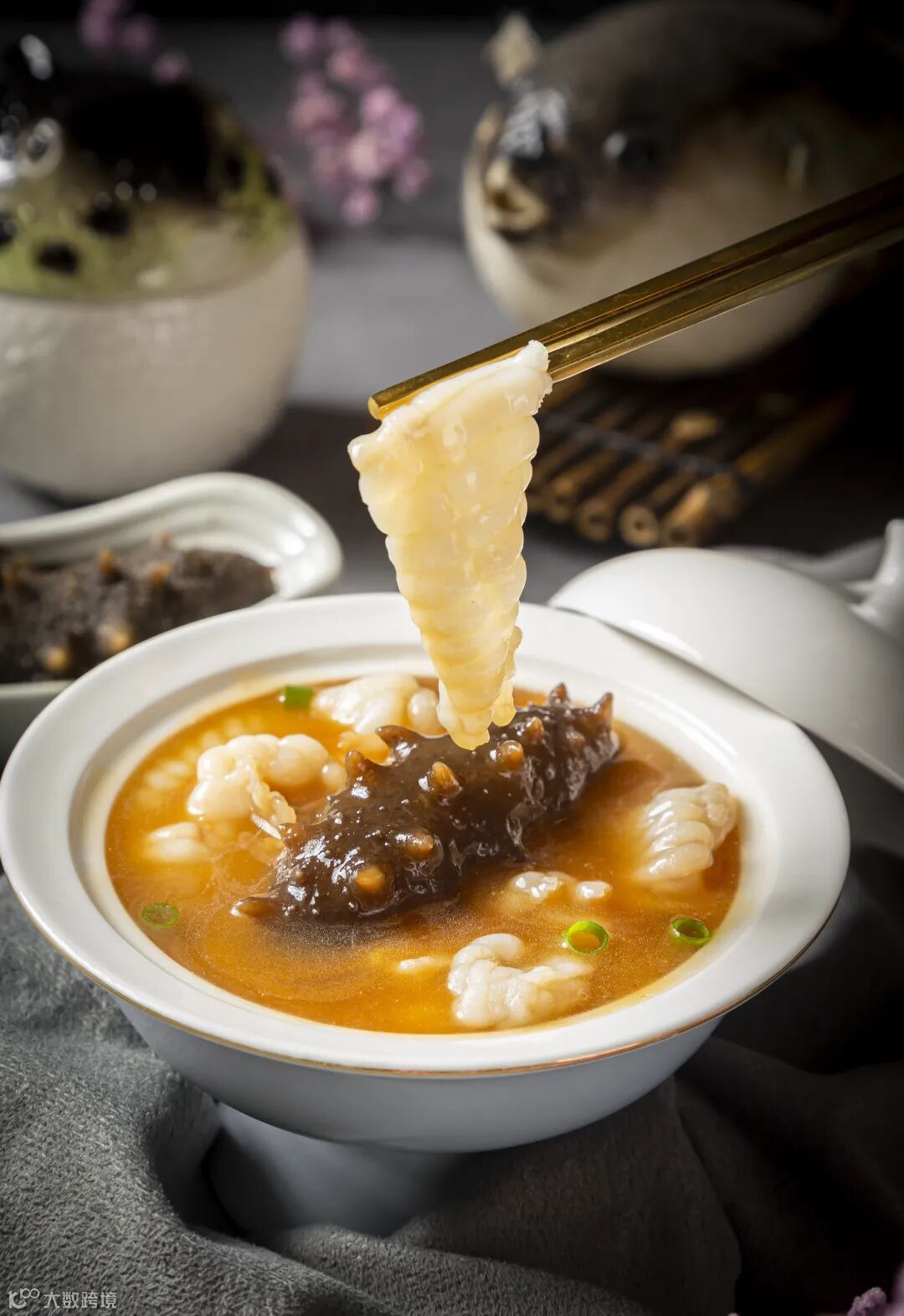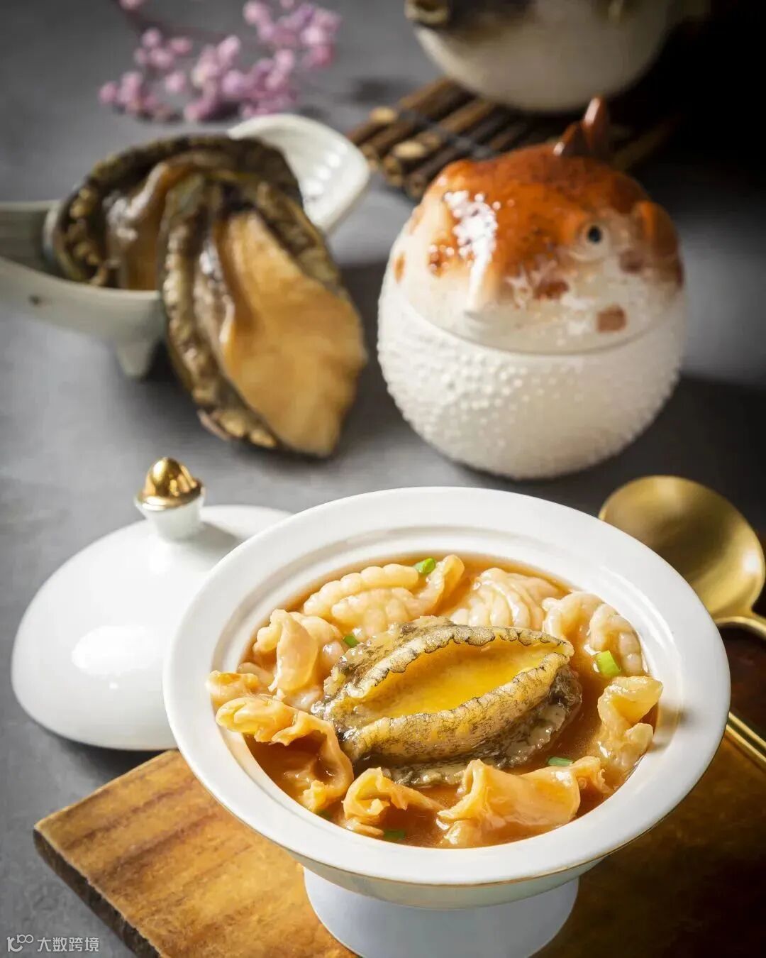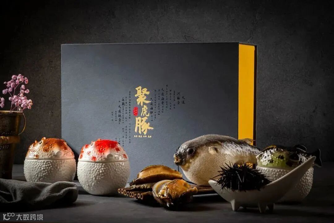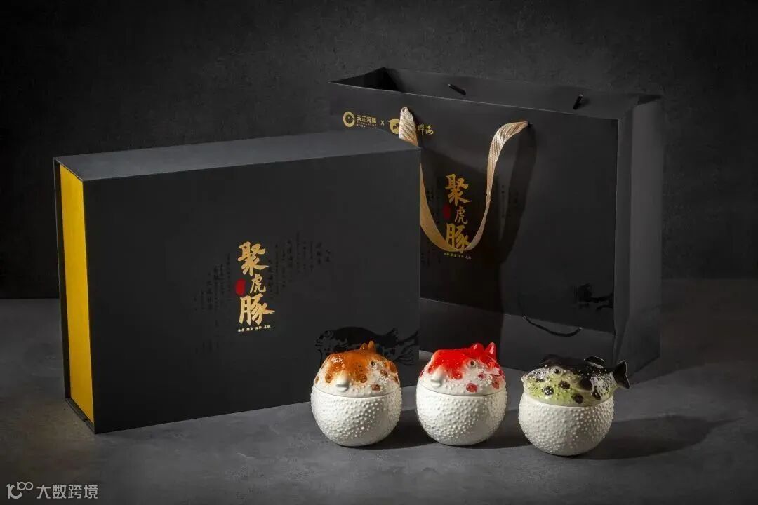 礼盒集“海胆鲍鱼聚虎豚”、“海参聚虎豚”、“鲍鱼花胶聚虎豚”3种经典口味,以精制河豚鱼造型的瓷罐包装,净含量:220g/罐(共6罐)。