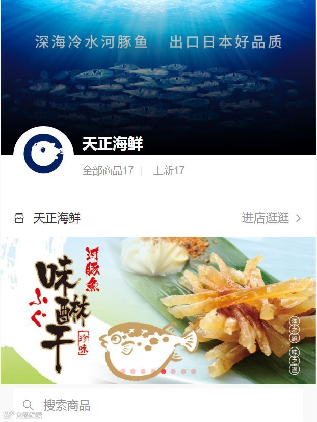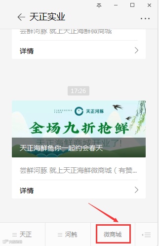 进入“天正实业”公众号,点击菜单“微商城”进入天正海鲜商城。