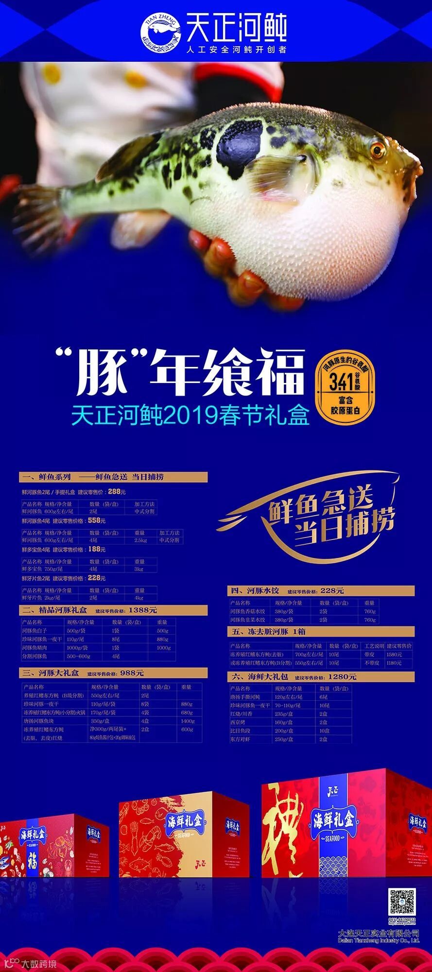 2018年7月,天正河鲀(也是大连河豚)主产地——大连金普新区被认定为“中国优质河豚鱼之乡”。大连河豚(红鳍东方鲀)因深海冷水域生长,以其几乎零脂肪、高优质蛋白质,口感鲜美、营养丰富,在众多河豚鱼种中,其营养价值和经济价值位于金字塔顶峰,被誉为“鲜锋味道”,同时,也被国家质检总局评为国家地理标志保护产品。金普新区被认定为“中国优质河豚鱼之乡”,实至名归。