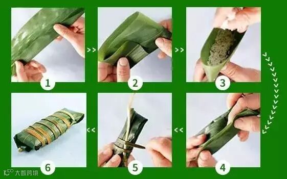 5、之后顺势将粽叶向下折,直到完全盖住糯米口为止,多余的粽叶反复折收在口上。