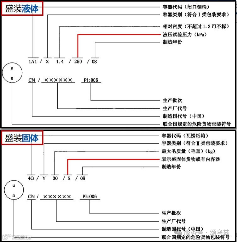 • 塑料桶和塑料罐:还需标出生产的月份