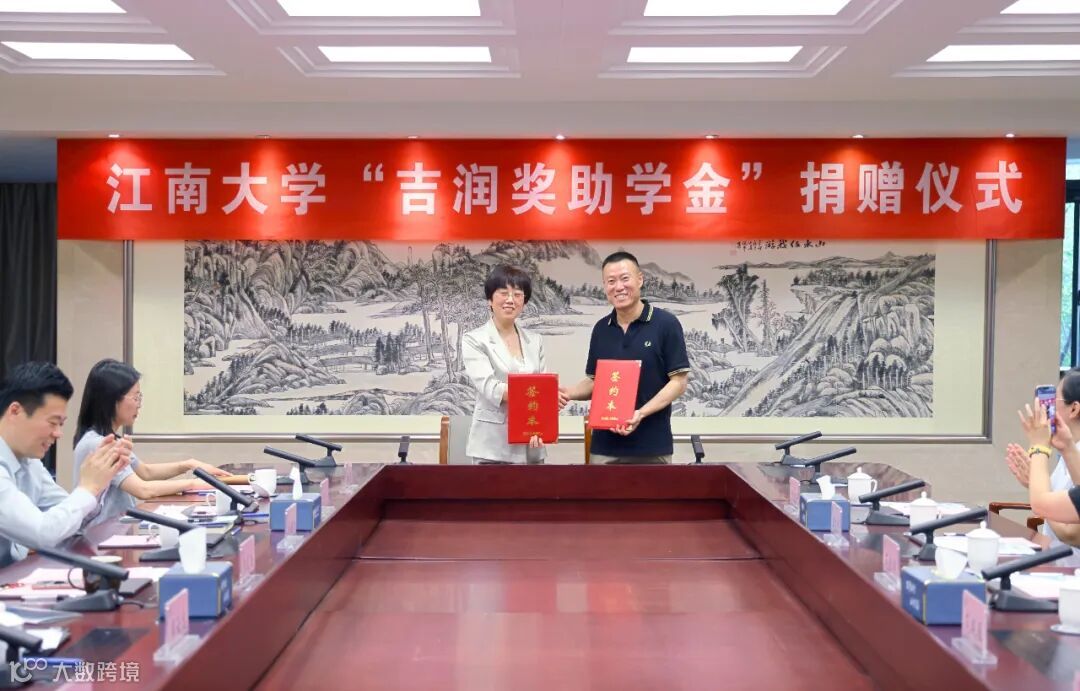 5月12日,江南大学与无锡市吉润国际贸易有限公司在行政楼B305会议室举行第二轮“吉润奖助学金”捐赠签约仪式。江南大学副校长张影陆,及学工处、社会合作处、教务处、纺织学院负责人出席,周云龙主持仪式。无锡市吉润国际贸易有限公司董事长范恒明、副董事长范晓雁携企业代表参加。