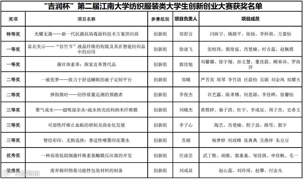 “吉润杯”第二届江南大学纺织服装类大学生创新创业大赛:
