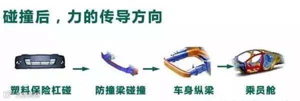 首先要跟大家说的是,防撞钢梁设计真的不是为了防撞,而是用来传递力的作用,我们来看一下碰撞后力的传递过程: