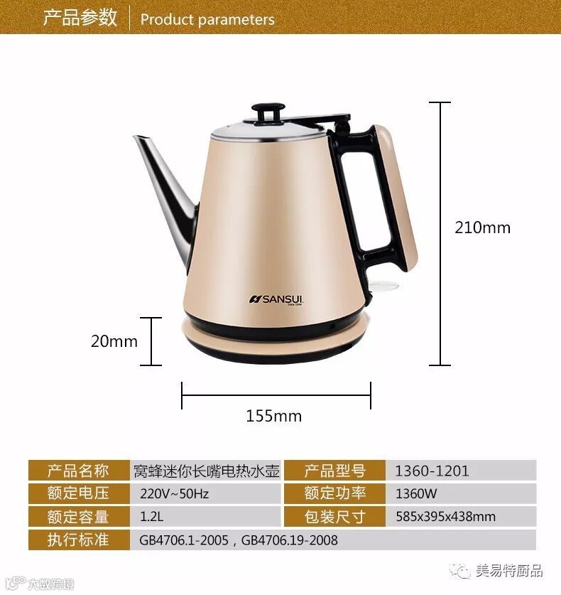1.2L窝蜂高档防烫长嘴电热壶