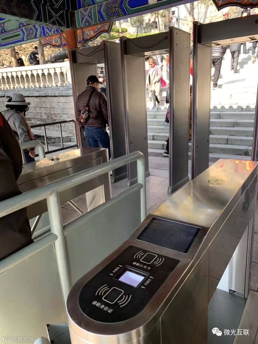八达岭长城段作为国内热门旅游景点之一,人流量那是相当大,遇到节假日,更是会呈现几何式增长,对于工作人员和验票设备都是极大的考验,为满足近年来二维码验票的用户需求,八达岭长城验票闸机上加了二维码扫描器,确切地说是微光互联二维码扫描器,游客既可以刷身份证又可以扫描二维码入园,更加方便快捷,同时也极大地缓解了管理人员的压力。