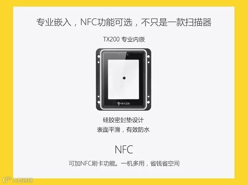 TX200性能稳定,支持二次开发,提供多种开发接口,USB、RS232、TTL多种输出可选,并已通过FCC认证,还可增加NFC刷卡功能,是自助终端、门禁闸机、智慧交通等领域的理想产品。想了解更多请点击嵌入式二维码扫描平台TX200产品介绍
