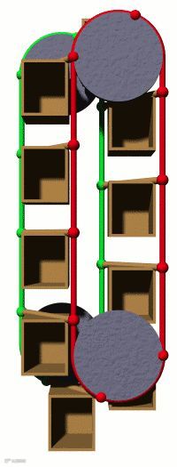 这款电梯名字叫做Paternoster,出自德国,这款电梯的设计相当特别,没有电梯门,也不会在任何一层停留,就像齿轮一样,一边上升一边下降,永不间断的运行,为人们省去了大量等电梯的时间。