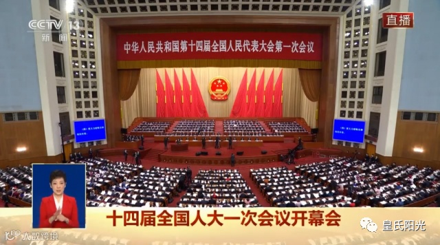 3月5日(星期日)上午9时,第十四届全国人民代表大会第一次会议在人民大会堂举行开幕会。
