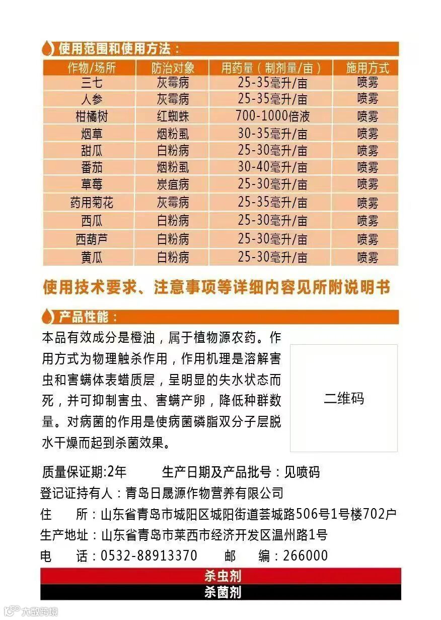 杀菌杀虫双登记 用橙让不承让