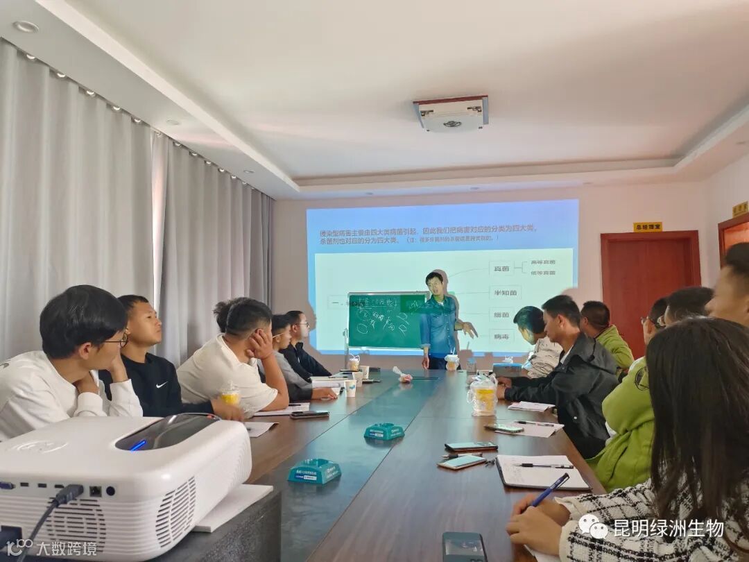导读:昆明绿洲生物公司召开公司内部培训会议,此次会议由公司的薛老师讲解关于作物的病虫害知识。