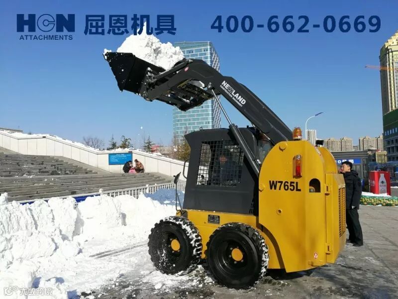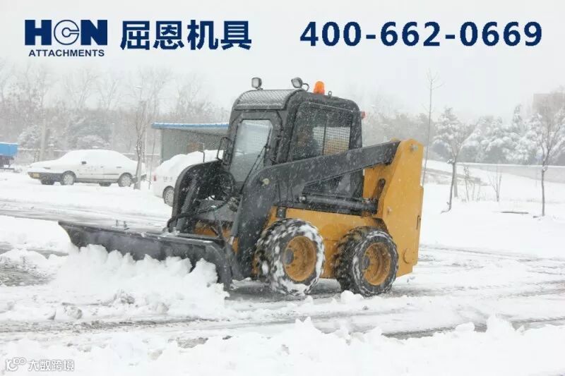以上介绍的是部分除冰雪附具的单独作业的功能,如果有条件,几台滑移配不同的附具联合作业,那效率--杠杠的!!!