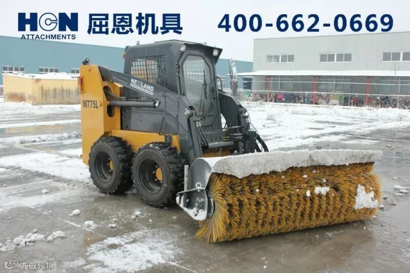NEWLAND江苏纽兰滑移装载机清雪的优势:灵活、高效,在院落和狭小的地方扫雪的效率和效果是50装载机都不能比的,更别说那些用小装载机改装的滚刷了。另外,滑移的操作的舒适性和各种附具的快速更换令其他清雪设备操作人员羡慕不已。滑移的清雪附具也不少,结合实际工作给大家介绍常用的几大利器: