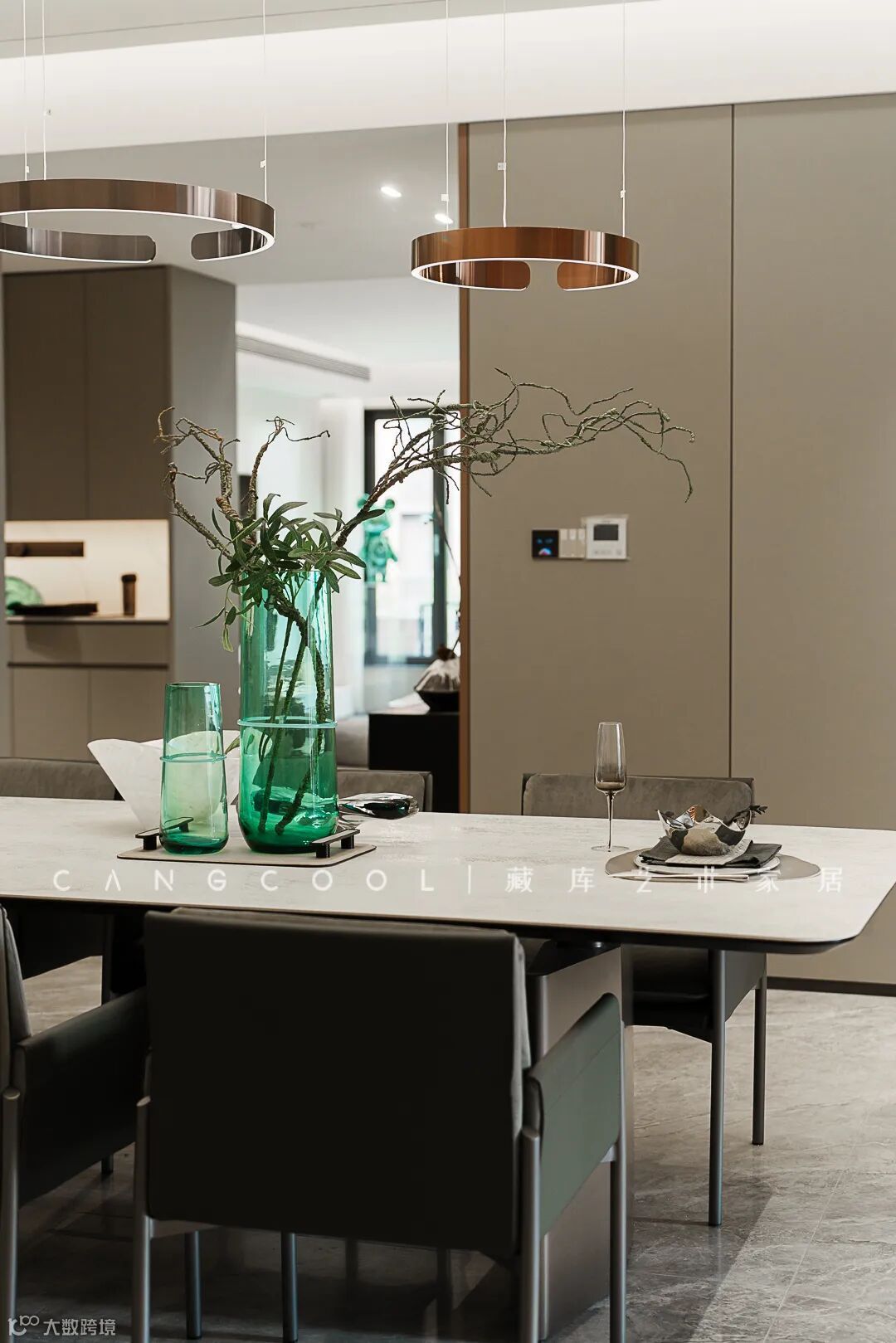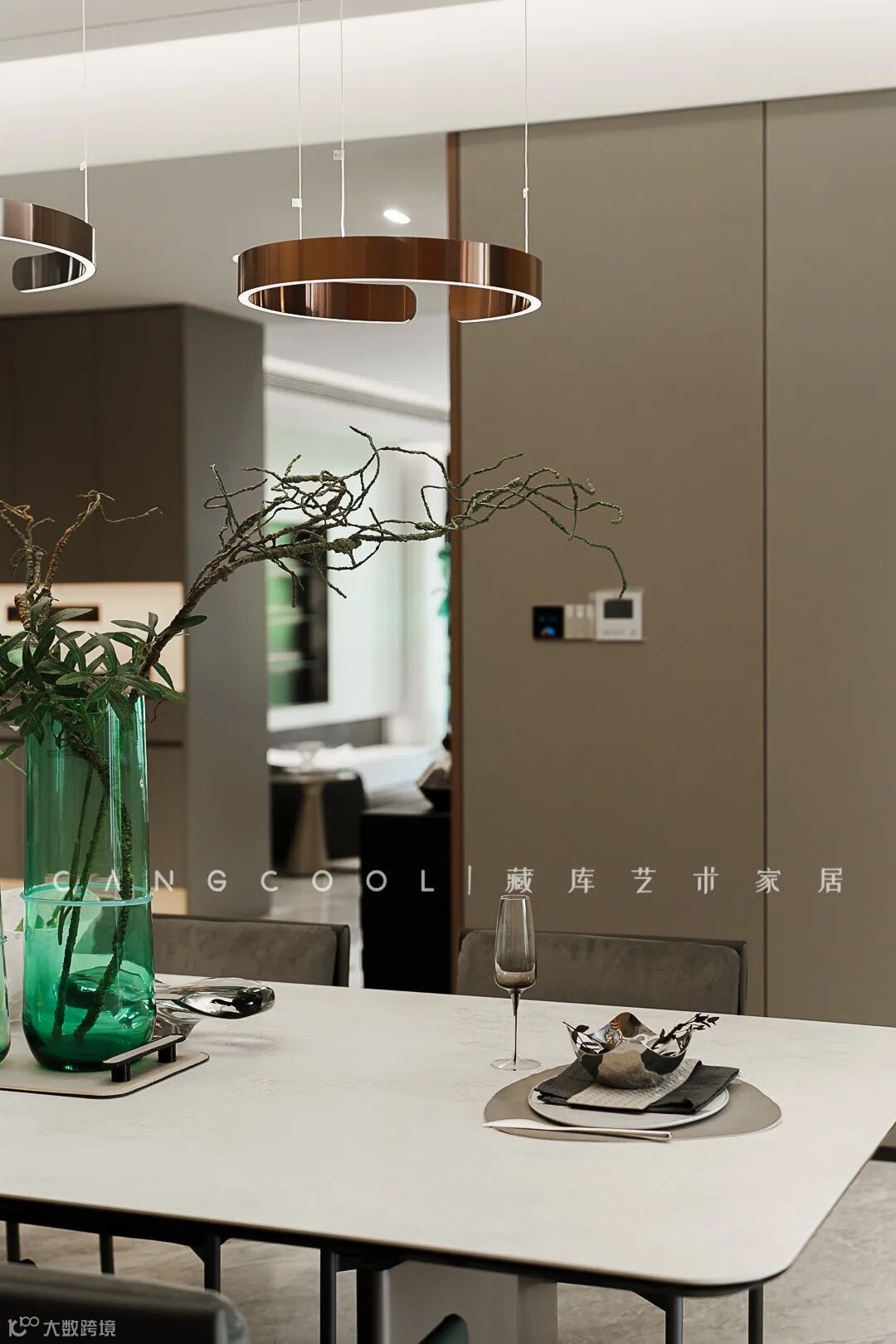 从客厅望向餐厅,视线穿过玄关,落在一日三餐都不能缺席的位置—餐区
