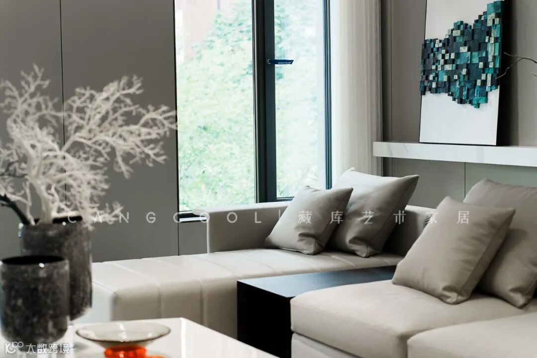 米色的意式极简造型沙发搭配有格调的饰品提升了客厅的气场,整个客厅简约而高级,沉静而大气。