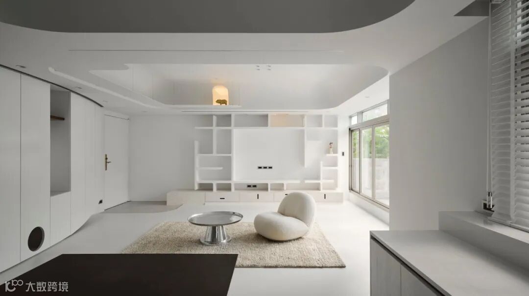 极简风的特点是,整体造型极致简单;家居配饰,少而精;配色高级清冷;简单,但有质感。在极简空间中善用线线条,丰富空间中的几何关系,让直线和圆弧结合,这样极简空间的韵味无法比拟。