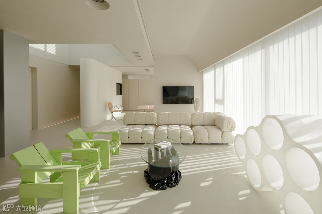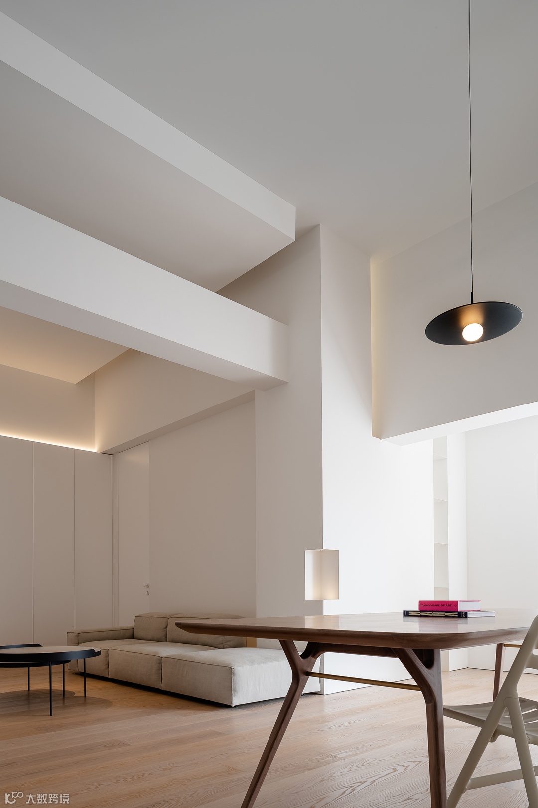 自由流淌的光,与墙体交互,在室内游走。随着时间的流逝,空间自然光影也在不断变化,极简的空间成为了光影的舞台,展现光影的魅力和效果,空间与光影和谐共生也相互成就。