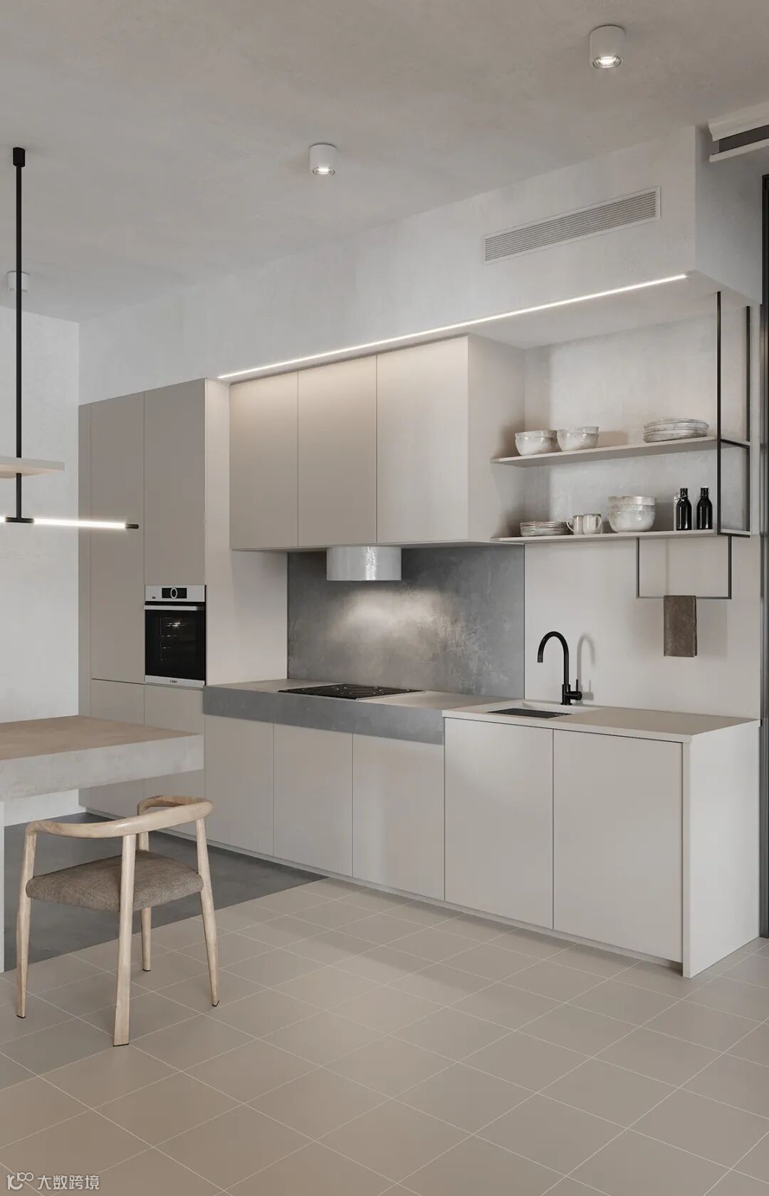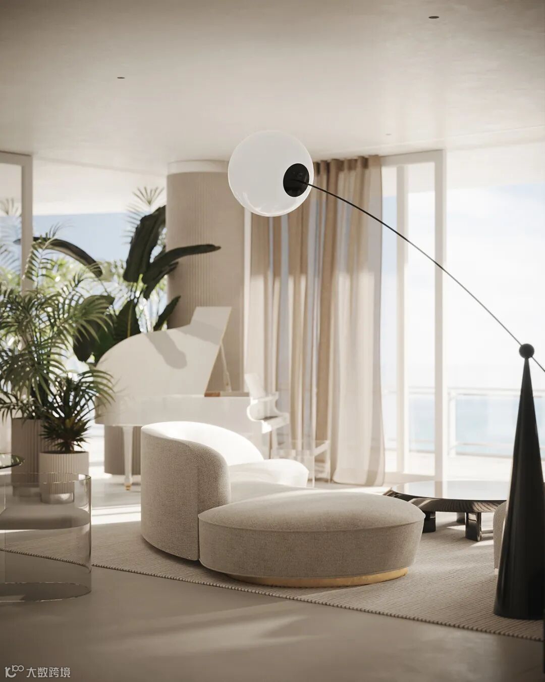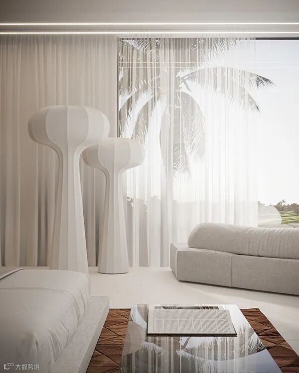 调色板中占主导地位的白色,从窗户望出去的景和灯的漫射光,让人想起落日,让业主在舒适的房子氛围里