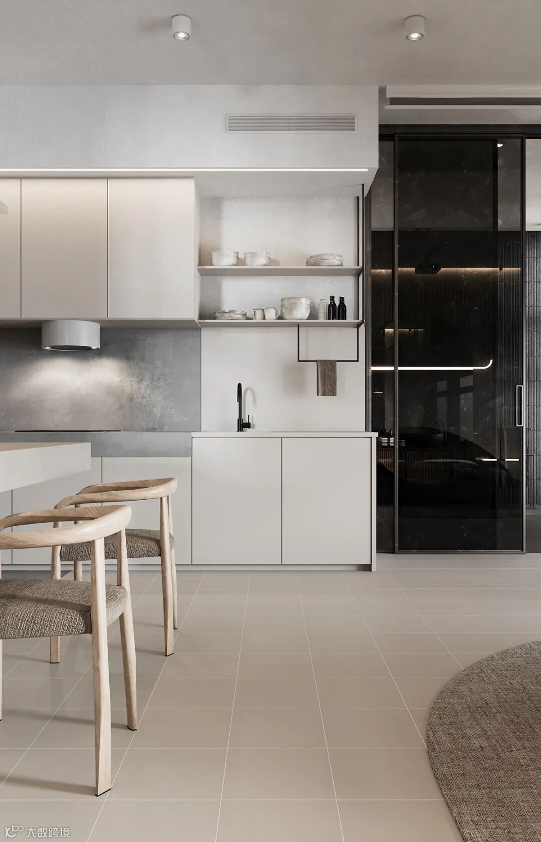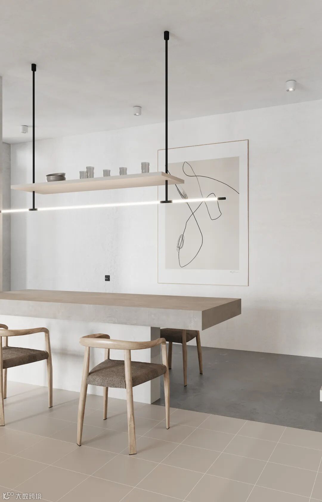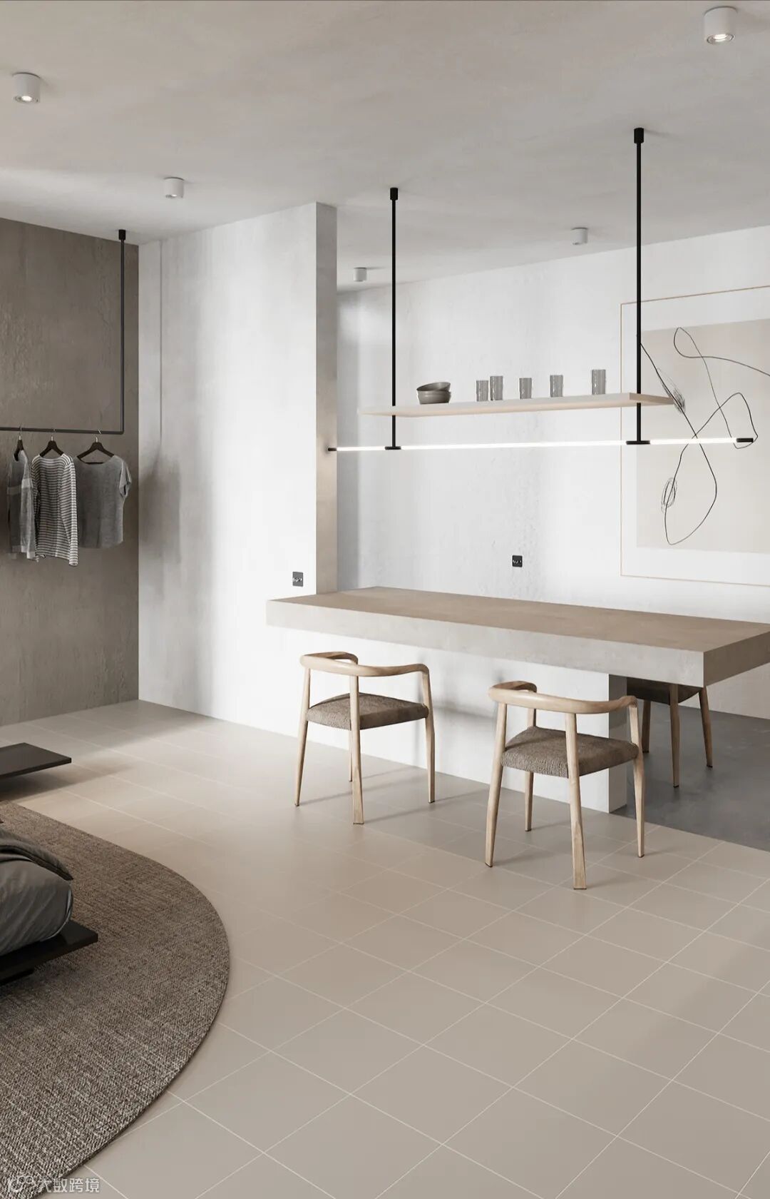 透过简单利落的线条元素、自然纹理,构成空间的层次美学