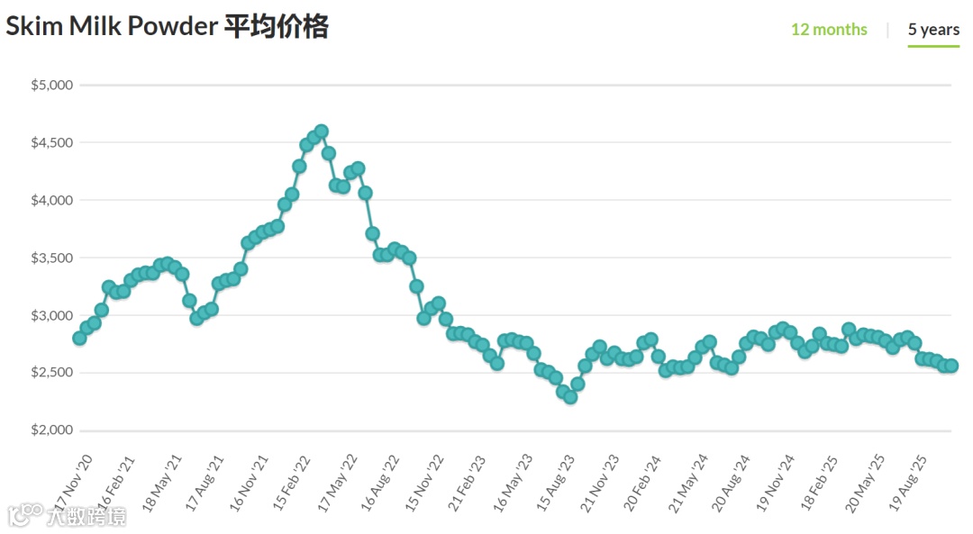 导读:脱脂乳粉价格持平,均价2,559美元/公吨;全脂乳粉价格下跌2.7%,均价3,503美元/公吨;黄油价格下跌4.3%,均价6,371美元/公吨;无水奶油下跌1.9%,均价6,887美元/公吨