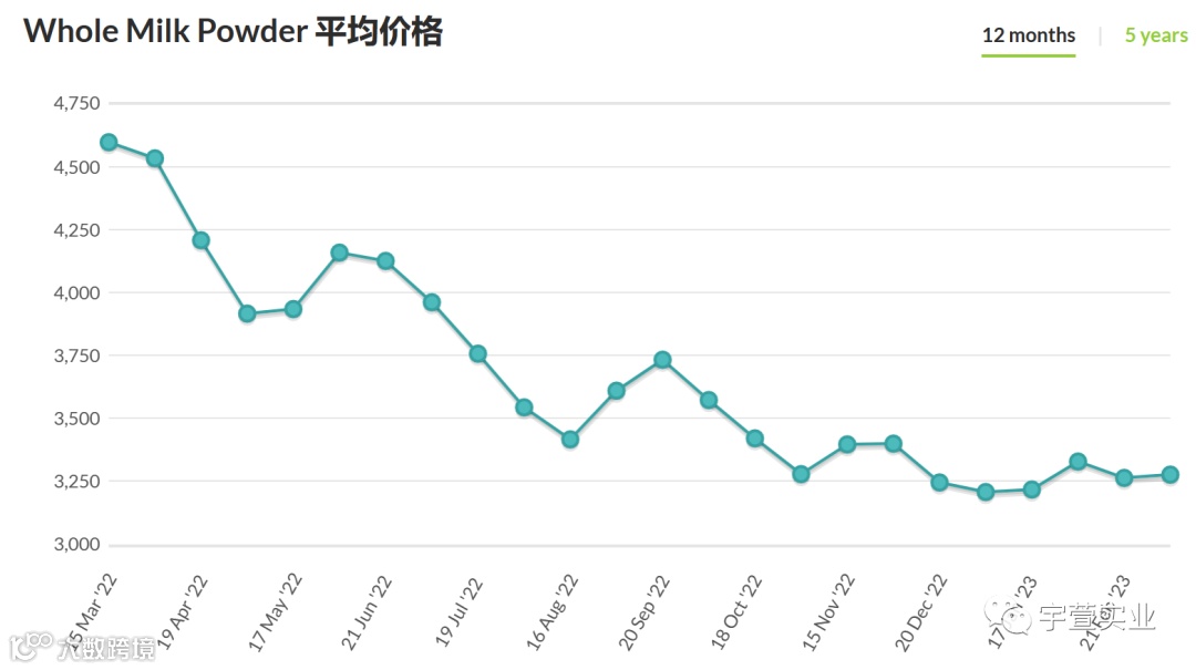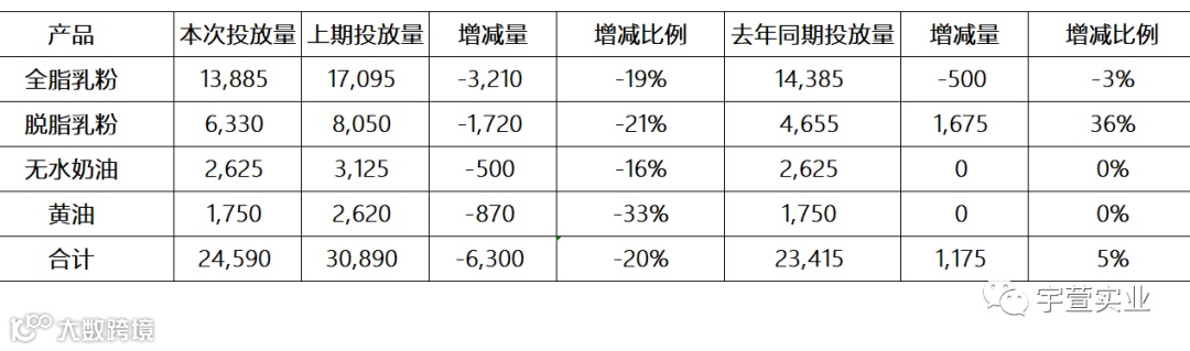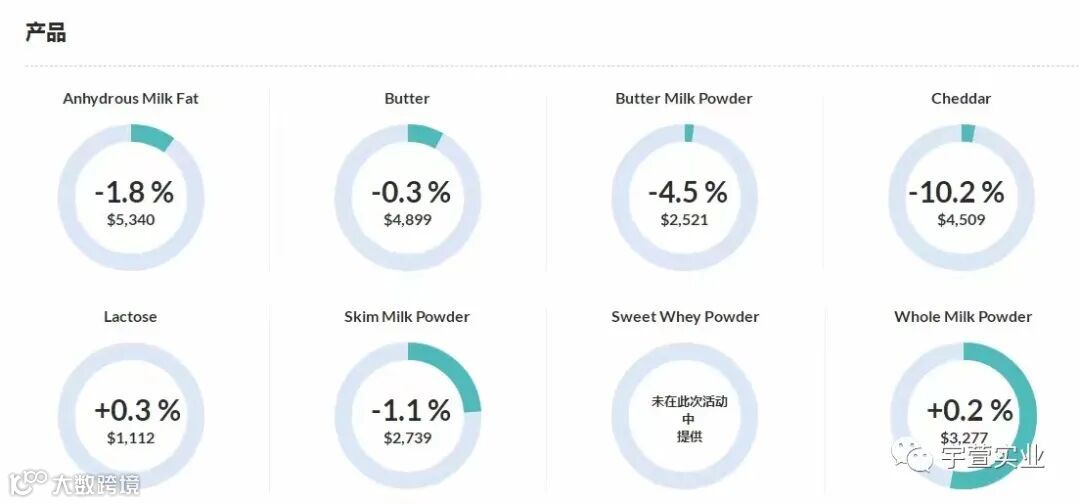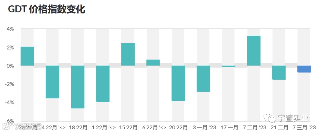 本次GDT除全脂乳粉价格略有上涨,其他主要品种价格均有不同幅度下调,整体呈现量减价跌的状态。