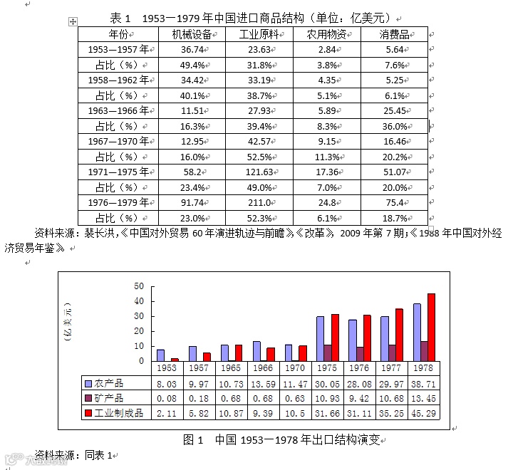 总体来看,中国改革开放前30年的对外贸易取得了恢复、发展、结构优化的显著成效,也保证了中国国际收支和财政收支的基本平衡,促进了国民经济的稳定发展。详情看图1和表1。