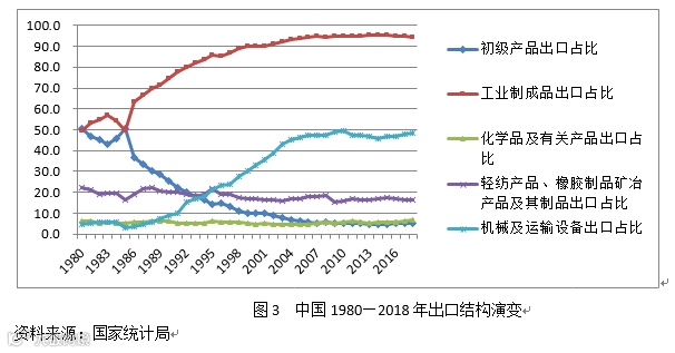 在对外贸易总量快速增长的同时,中国进出口的结构也不断优化,表明贸易大国开始积蓄力量向贸易强国转变。具体,从图3、图4、图5可知。