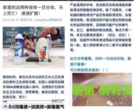 谣言四:《家里的这两种液体一旦合体,马上死亡! 速速扩散!》