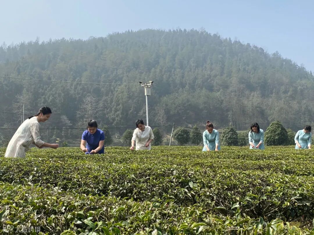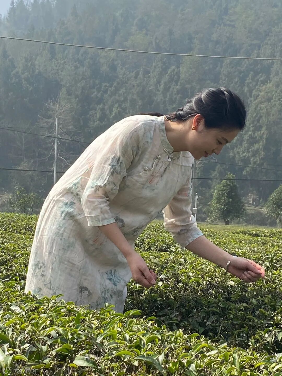 与茶叶嫩芽亲密接触,女神们做一回地地道道的采茶女。
