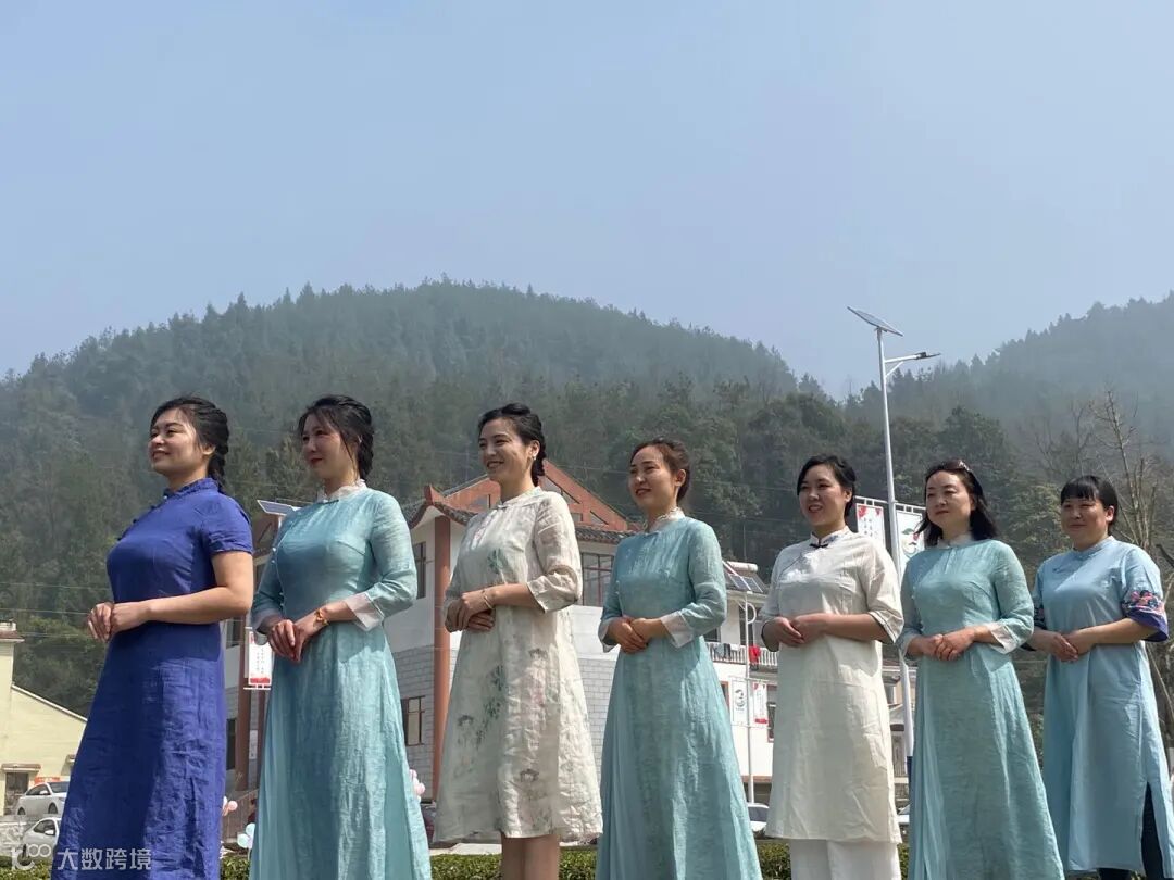 同行于茶山之间,温和的春风轻轻吹拂,女神们坐也优雅,行也优雅。