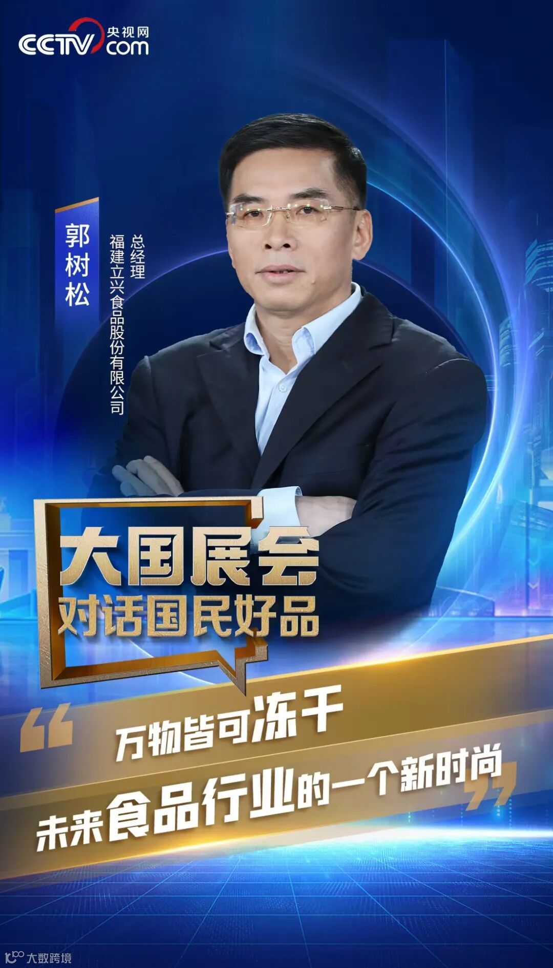 大国国货对话国民好品——立兴冻干!福建立兴食品股份有限公司(以下简称“福建立兴”)总经理郭树松接受央视网黄薇老师采访时称:“万物皆可冻干,冻干食品将成为未来食品行业的一个新时尚!”