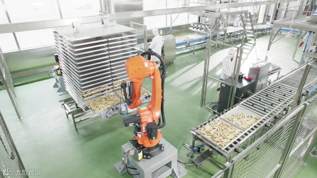 第四期冻干项目中,以4台KUKA机器人控制系统(简称“机械手”)犹为亮眼,2台负责卸料2台负责上料,一次可上下料4盘产品。由机器代替人工,大大减少了人力成本,并且更高效、更灵活、更安全、更智能化,它标志着福建立兴农产品深加工产业智能数控化的全面升级!
