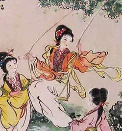 这是中国古代清明节习俗。五代王仁裕《开元天宝遗事》载“天宝宫中至寒食节竟竖秋千,令宫嫔辈戏笑以为宴乐。帝呼为半仙之戏,都中士民因而呼之”,宋代宰相文彦博诗《寒食日过龙门》。
