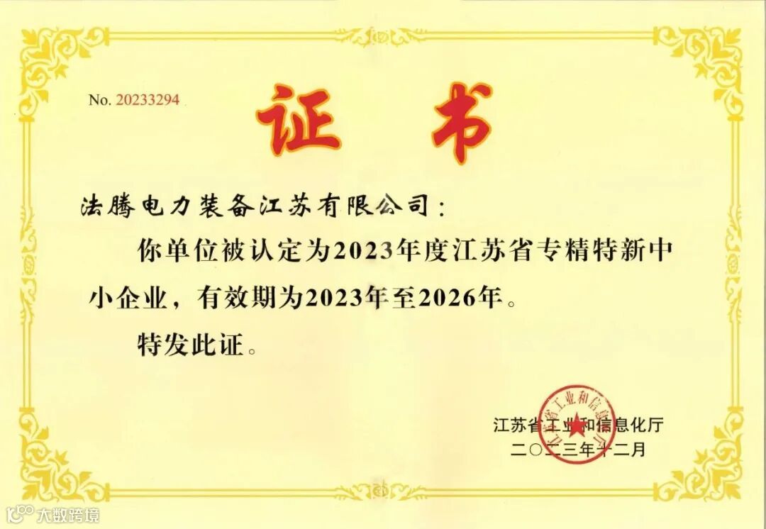 作为施耐德电气金牌盘厂,法腾电力始终坚持自主研发和技术创新,深耕配电领域,积累了丰富的经验和技术优势。此前,公司已先后获得高新技术企业、盐城市瞪羚企业等多项荣誉,此次再获江苏省“专精特新”中小企业称号,是对法腾电力在技术创新、产品精细化和市场前瞻性等方面的高度肯定。