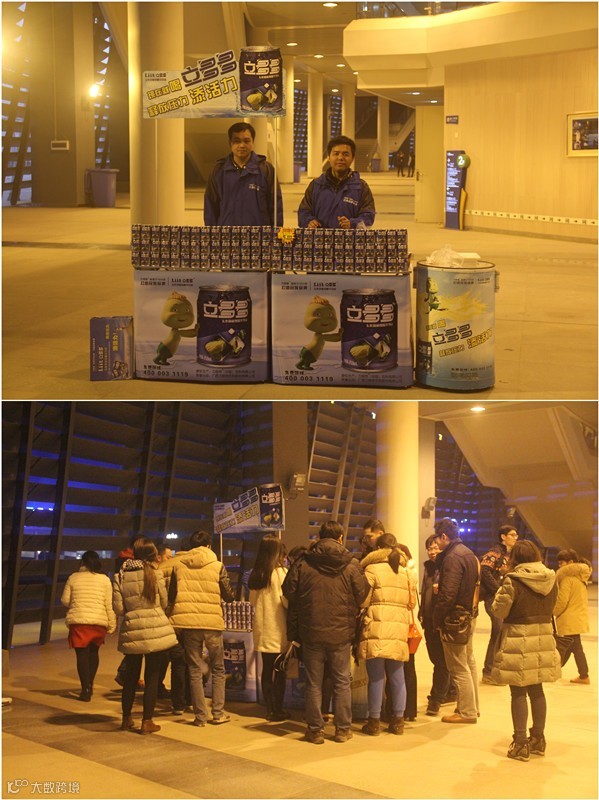 在广西体育中心外,立多多“严阵以待”,欢迎到场的各位观众