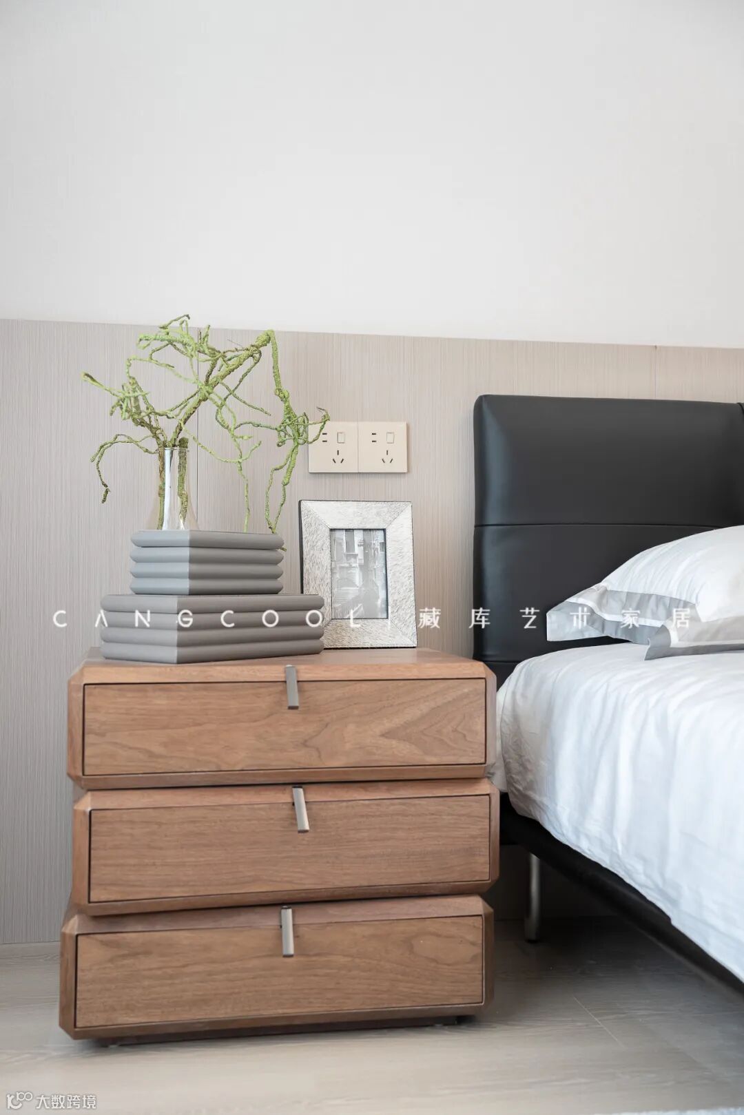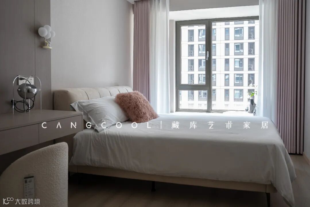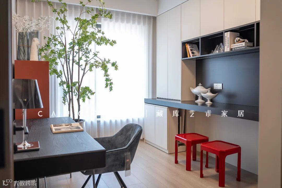 卧室的极简美学有序布局,向外扩散,直至与户外的绿意交错,激发出哲学般的意味。阳台角落也是资深藏库设计师为其专门打造的,小小空间也能散发别样的生命力。