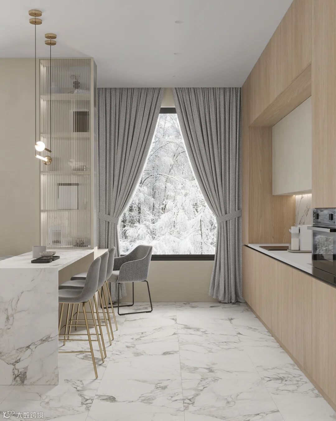 设计师将干净又温柔的奶油色和白色相结合,营造出高糖分”的空间氛围感。
