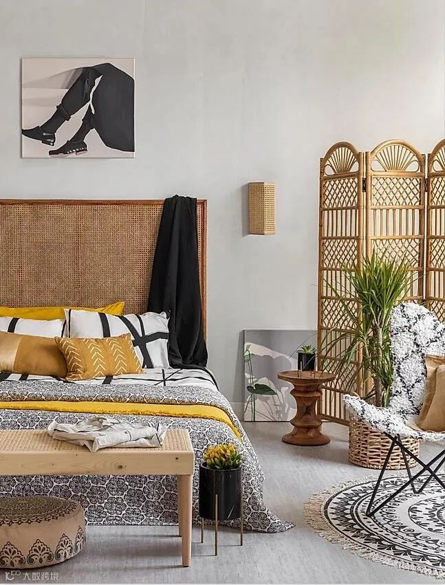 硬朗的美式家具,搭配原木的亲切与藤编的自然与舒服,疏密有致,传达一种宁静与大气。