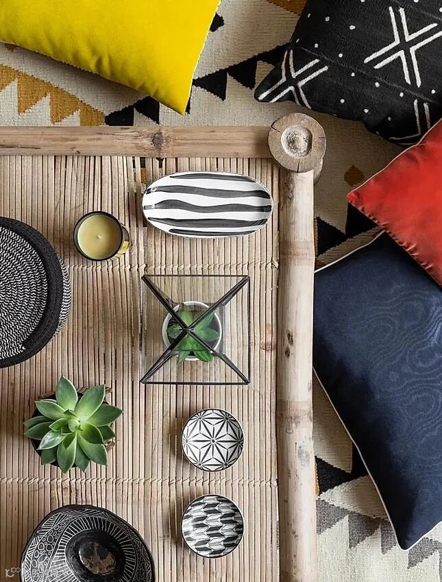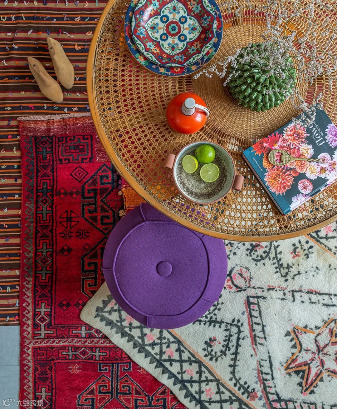 大胆用色,材料均取自自然,甚至没有做任何雕琢,空间丰富而不凌乱,处处都体现着设计师的构图功力与美学修为。