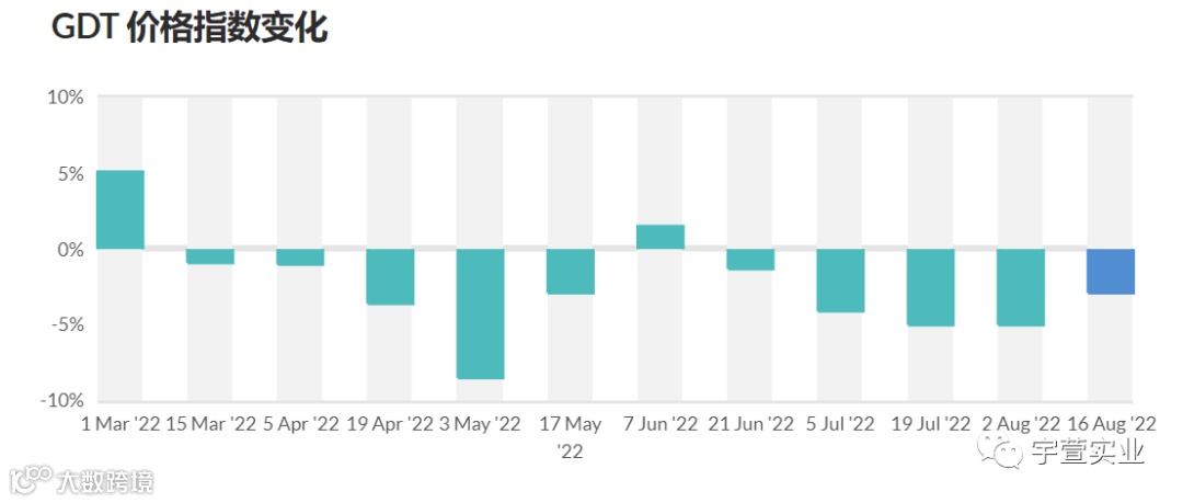 本次GDT拍卖脱脂产品止跌回稳,全脂仍维持跌势不变,一方面是投放量连续增加带来的供需失衡,另一方面也表现出当前世界经济环境下市场信心尚未恢复。但从以往历史成交价格看,部分产品已逐渐进入历史低位。