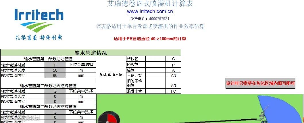 因此,灌溉设备的投入决策是需要多方面思考才能得出的结论。投资的每一分钱都要用在刀刃上。而且在投资决策时也不能只考虑某一项的费用,而要从综合使用成本进行综合评估。我们为此专门总结了卷盘式、平移式喷灌设备的综合成本计算表,里面涵盖了需要考虑的大部分内容例如基础设施投入、能耗及设备折旧等因素,只需要动手输入一些参数即可。您可以通过www.irritech.com.cn 的下载区进行免费下载,可欢迎您就此话题提出您的问题或见解。